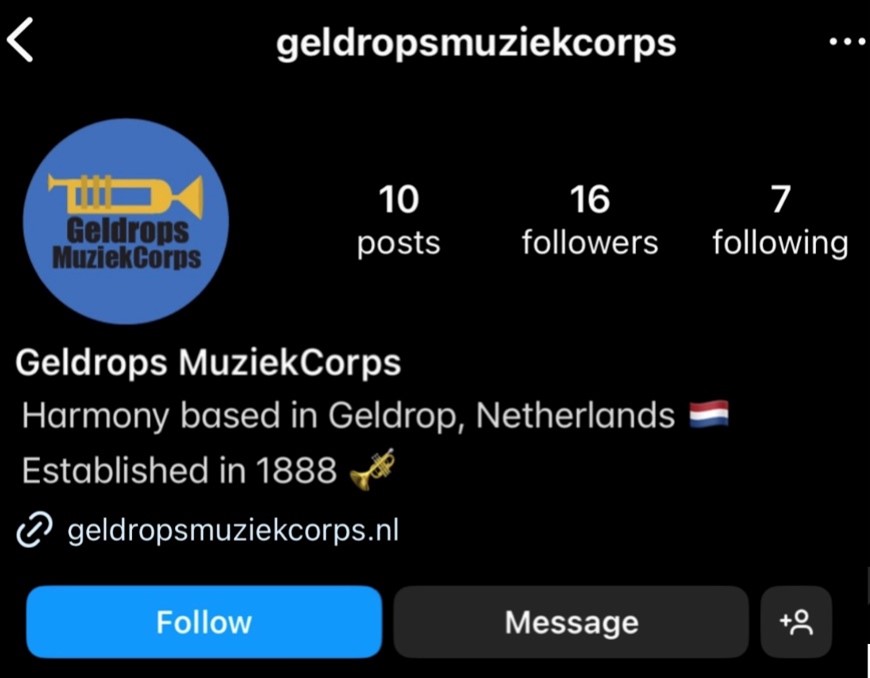 As part of the brand guide, we made a social media guide to help the Geldrops Muziek Corps team with outreach on social media. We covered every element on their social media pages from a centralized name to the profile picture, description, and more. We also covered what content to post on which social media platforms.